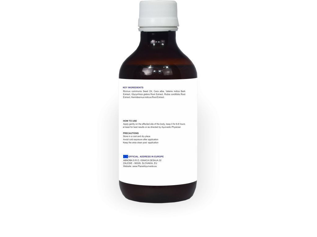 Pind Thailam by Planet Ayurveda is a time-tested, classic Ayurvedic formula specially designed to combat these complex problems. Unlike ordinary pain oils, Pind Oil not only soothes pain (Vata) but at the same time actively cools and calms inflammation and the burning sensation (Pitta). It is a targeted therapy that penetrates deep into the tissues and brings relief where it is most needed.
